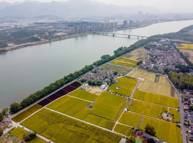 梅蓉村,這個位于富春江北岸的村落,是杭州市首批共富村之一。連片的稻田依偎著富春江水,三五成群的游客在這里盡情感受秋天的氣息。自2019年起,梅蓉村開始了土地流轉工作,將2000畝土地流轉給村股份經濟合作社,再租給種糧大戶統一種植水稻、油菜。這2000畝農田隨著季節的更迭變換著景色,成為了村莊景觀中不可或缺的一部分。